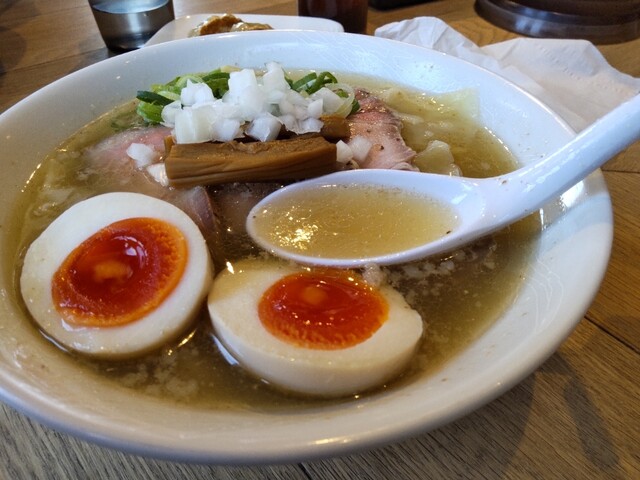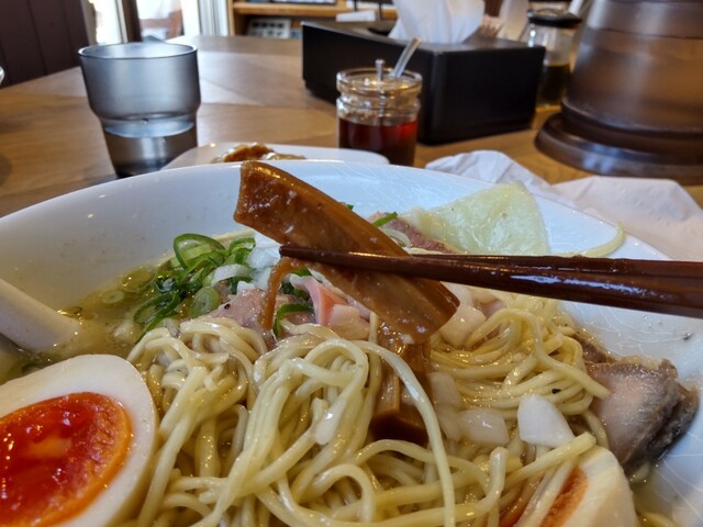 そして、その合間に、表面オーブン焼きした甘口の叉焼、程よい塩気の濃厚味玉、つるんとした大きいワンタンをいただくと、気づけば麺もスープも完飲完食(^^)