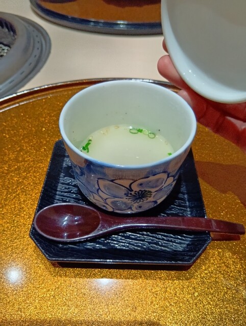 繊維が細かく、アテンダーの五十川さんですら目が離せないほど焼くのが難しいとのことで、一枚づつ焼いてくださいました!片面程よく焼いた和牛ヒレ肉に黒トリュフをふんだんに削りかけて、溶いた卵黄をたっぷり絡めていただくと、肉質は箸で切れるほどやわらかく、トリュフの香りと卵黄の濃厚な旨みが三味一体となって、私が人生でいただいた最上級の焼きすきでした♪