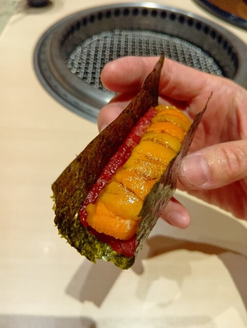 とちぎ牛のユッケは、食感なめらかでごま油の香りと根室雲丹の濃厚な甘みが海苔でひとまとまりとなり、一品目から胃と心を掴まれました♪