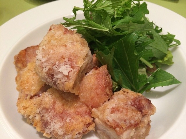 もも肉を一枚で揚げたものをカットしているようで外側のパリッとした仕上がりと中のお肉のジューシーさが良いですね。