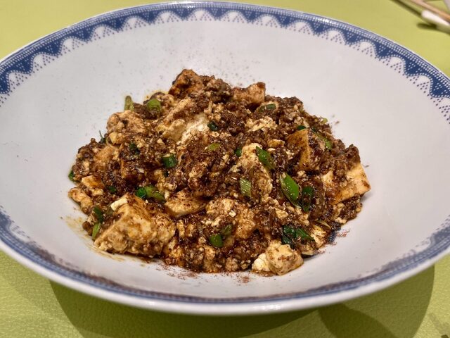 麻婆豆腐はスパイシーで香り高く、今まで食べたことのあるなかで一番美味しい。