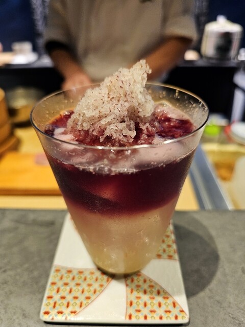 新しいルビーロマンのレモンサワーは削ったルビーロマンと2層のグラデーションになったカクテルが、飲む度に混ざりあって味変を楽しめます。