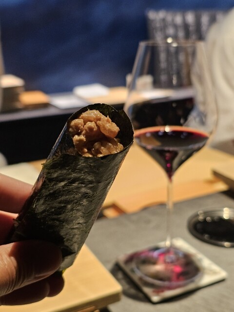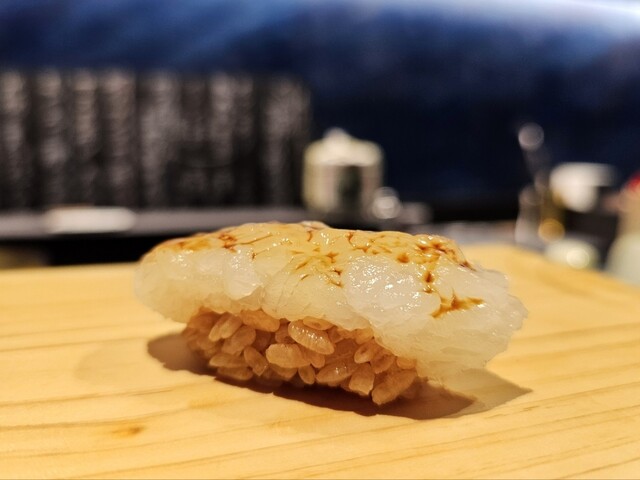 アラカルトメニューも色々ありますが、おすすめの一皿から始まり、茶碗蒸し、握り9貫、魚の串、味噌汁が付いたコースは満足度高くオススメ。