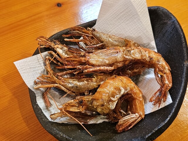 刺し盛り、モサエビ&ハタハタの唐揚げ。