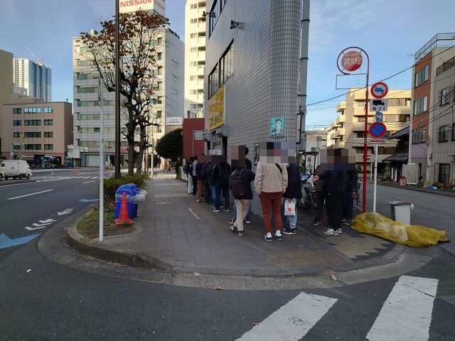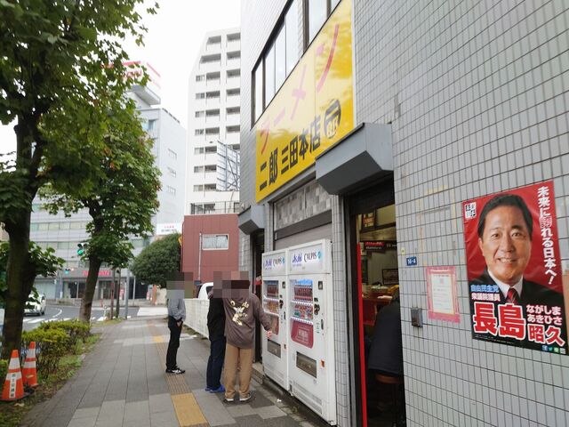 三田本店にAM8:15到着で既に開店しており外待ち3名にドッキング!