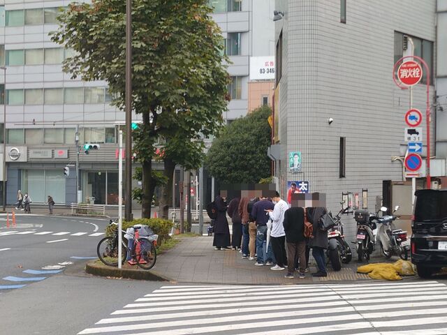 平日の早朝にも拘わらず10名の待ちとは…相変わらず三田本店はスゴイですね!