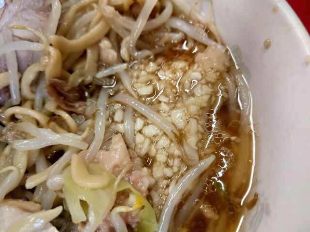 ボクはこの日は、「麺少なめ」に「ニンニク、アブラ」