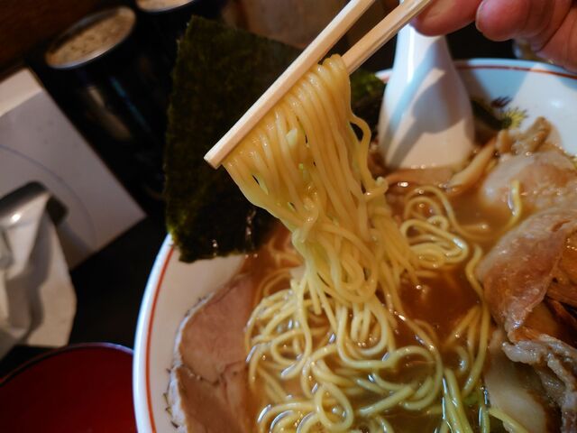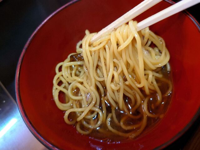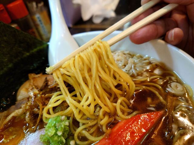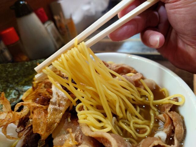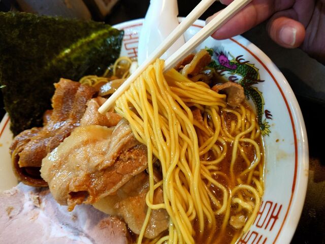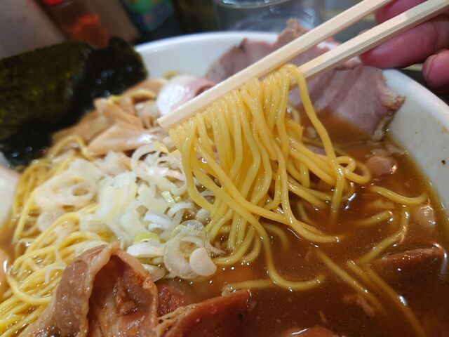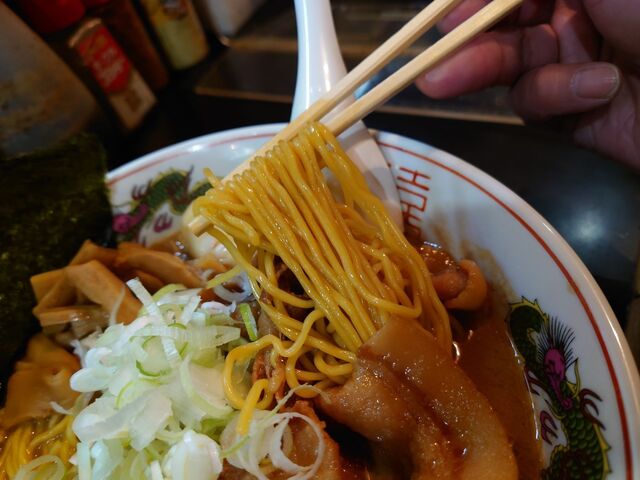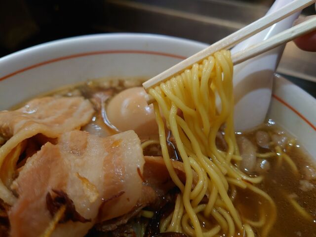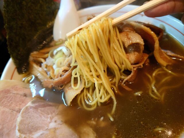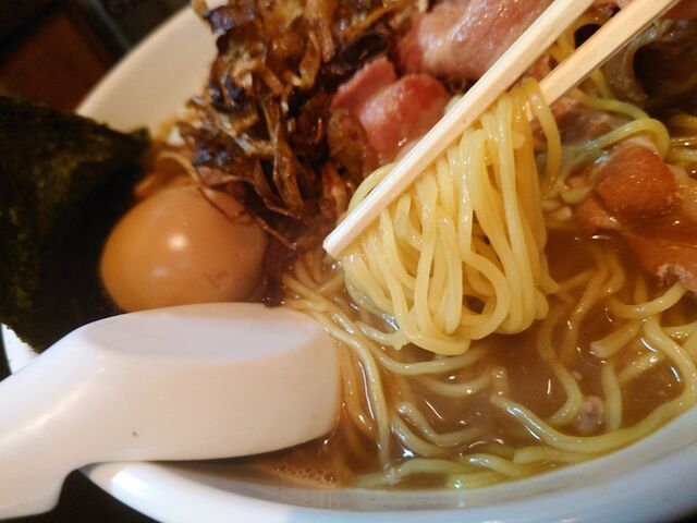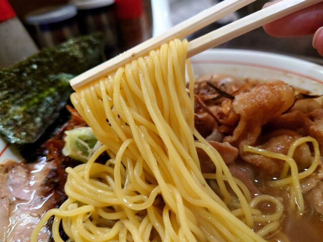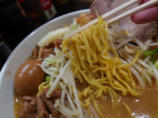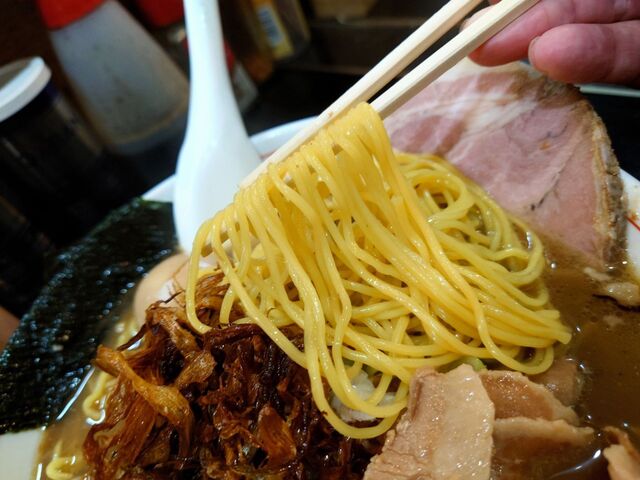 そして、麺は定番の麺よりひと回り太い縮れ麺。