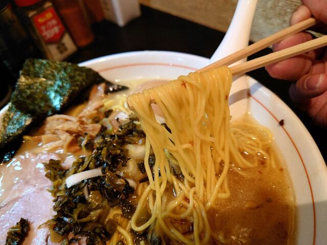 個人的に高菜漬けトッピングも豚骨ラーメン以外では、お初の試み♪美味しいですね!
