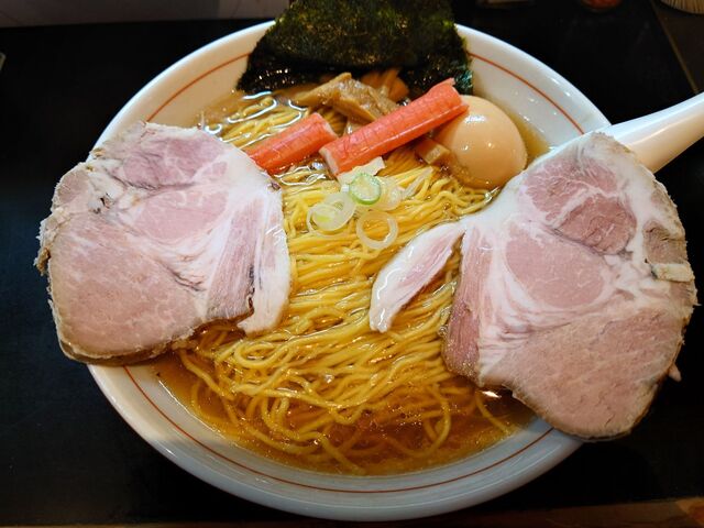 具材は国産のレアチャーシューに煮玉子、メンマ、味付海苔は通常通りトッピング!
