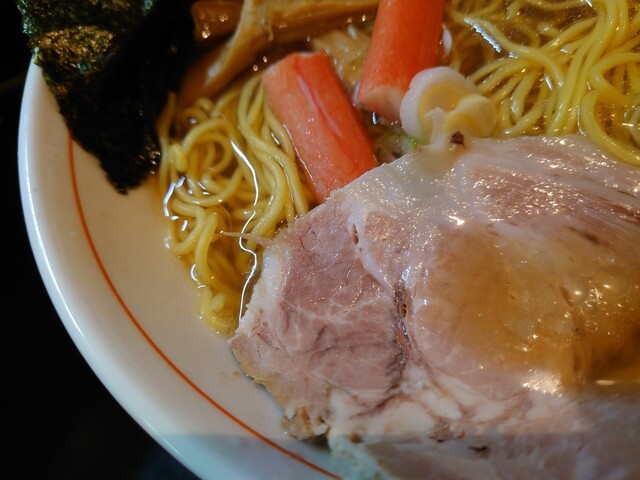 で、チャーシューは告知通りの角煮で登場!分厚くカットされたバラで甘く柔らかい部位です。