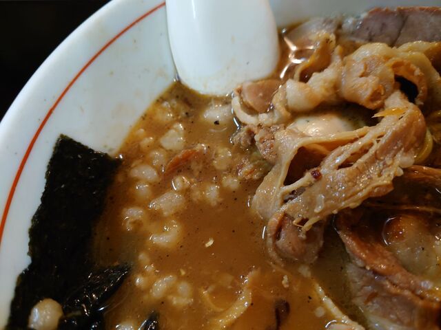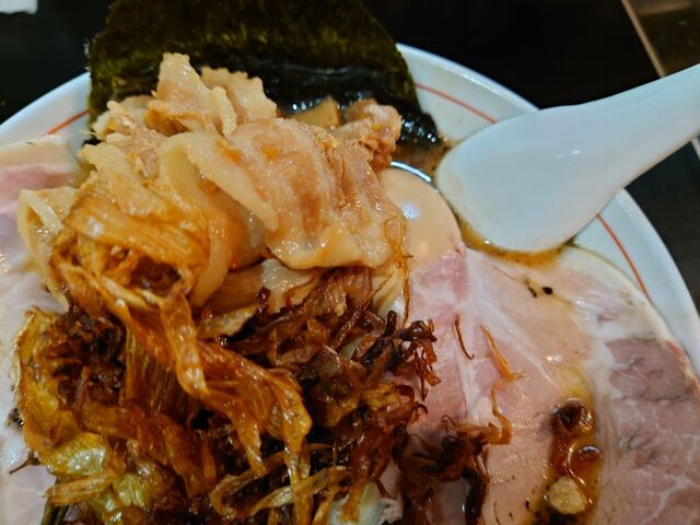 スープは濃厚な具材の出汁でチョッパ旨い!カエシ無しでも充分な旨辛いです。