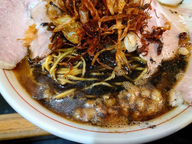 おぉ~何やら黒い物体が…。少し啜ってみると、マー油ではないですか~♪