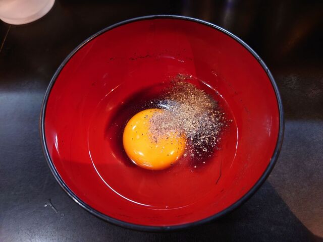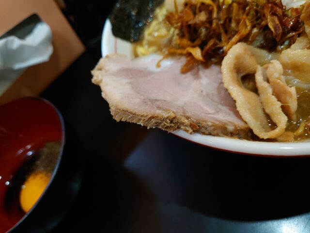 具材は一日目と同様で、レアチャーシューに煮玉子、メンマ、味付海苔は通常通りトッピング!