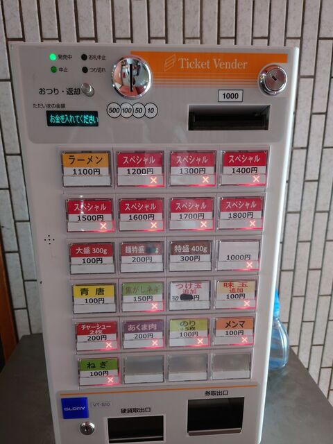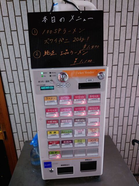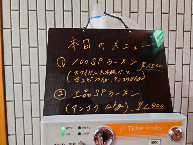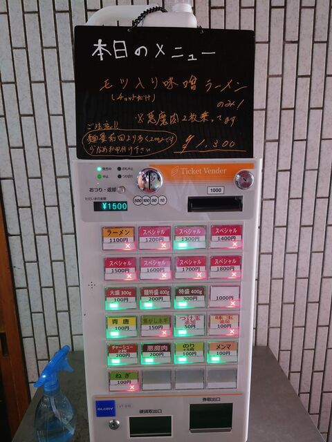 で、AM9:00開店30分位前になると券売機の上に本日のメニューの案内が書かれた黒板が設置されます。