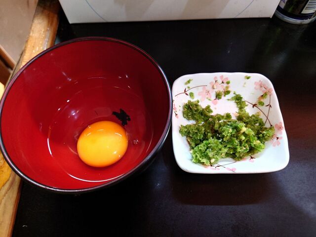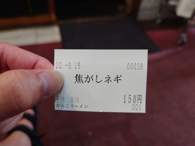 店内カウンター7席の1巡目までは「焦しネギ」トッピングが希望者にサービスとなっています。