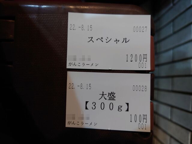 で、食券をカウンター上段に置き、「100で!」と申告。