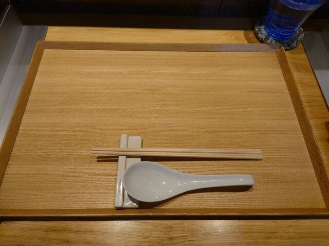 カウンターには予め木製のトレーにレンゲ、箸が準備されていました。