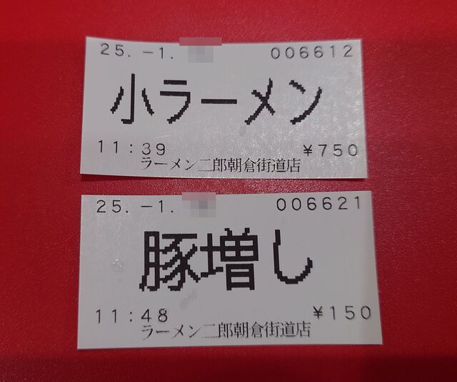 今回の二郎は「ラーメン二郎 朝倉街道駅前店」。
