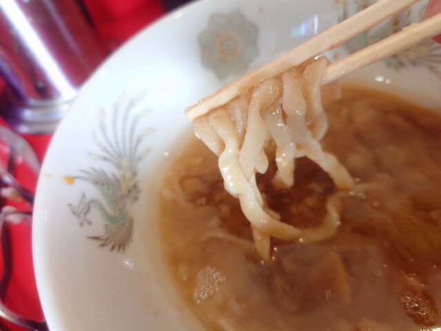 そして、麺は極太平打の縮れ。小麦の旨味に微乳化スープを吸って美味しい。