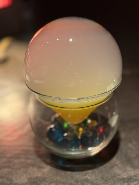19時から予約でしたが、ちょっと前から入店できます。入ってすぐはバーになっていて、時間になるまでそこでウェルカムドリンクを。会計もペアリング込みの値段のため入店とともに先に決済をします。明るい雰囲気ですが、バーとかあまり行かないので若干緊張。。。