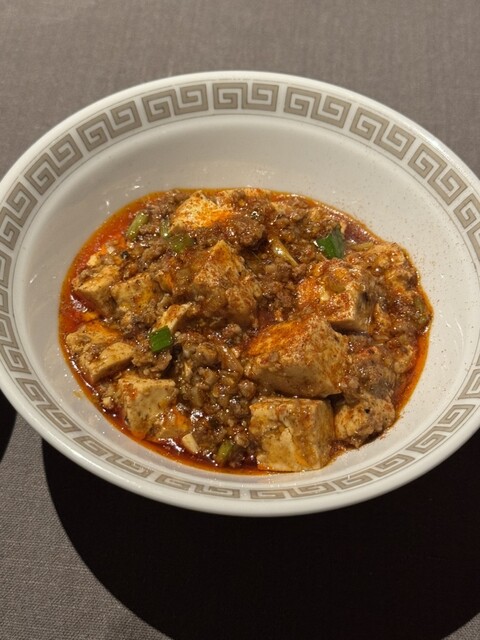 メニューはここで終了ですが、お腹に余裕がある人のために麻婆豆腐を追加できます。追加注文を聞かれた時は全然いけると思っていましたが、雲白肉片のあとに青島麺がきて、ちょっとお腹はいい感じに。そして麻婆豆腐登場。辛い。私辛いの強くないので一気にピンチに(笑)