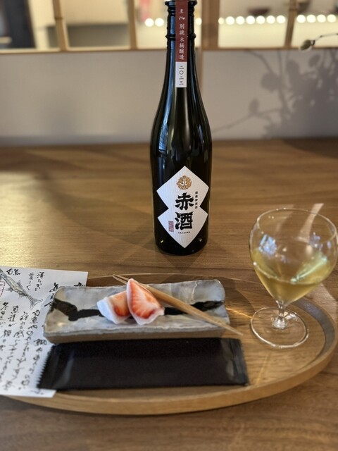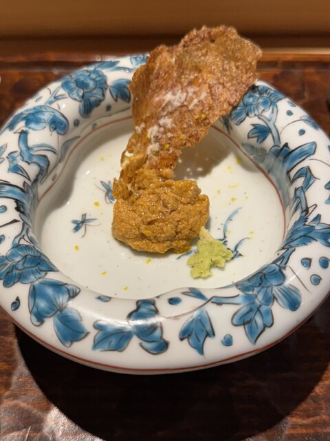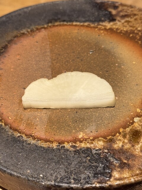 まずはお出花的なお茶。鹿児島知覧茶の水出しの玉露。そして前半はつまみから。お茶の後にまたスープ的なのがきたかと思いきや、鱈の白子でした。白子?って思いましたが、ちゃんと美味しい白子でした。固体で食べるイメージだったのでびっくりしましたがこれはこれでちゃんと味わっていきます。続いて、燻製された金目鯛、この時期ならではの子持ちヤリイカ、異常にコリッコリの赤ナマコ、クエは“あの白菜”と共に。お酒も進みます。