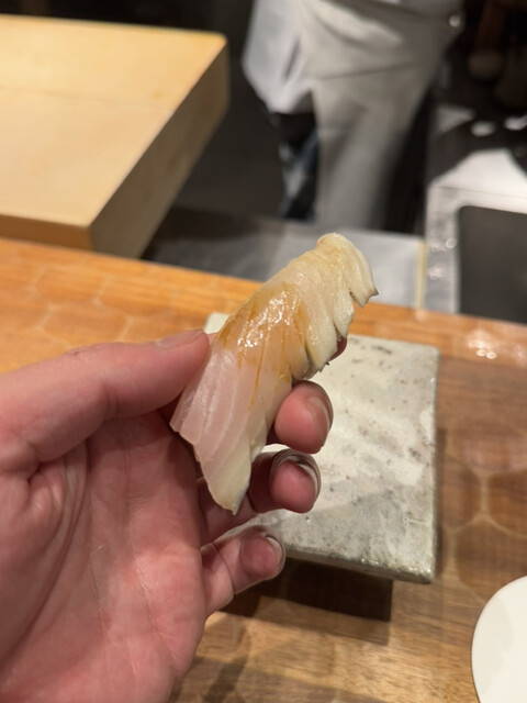 続いて与市のあん肝。信じられないくらい美味い。こんなの初めて。食べている時から序盤にこれを食べれて良かったと思えた。鹿児島の春日子鯛、愛知三河湾の赤貝は紐付きで。天草の小肌、大洗の蛤、青森の平目。中には私の大好きなエンガワもin。この時点で10貫。ようやく折り返し。絶対やばい。
