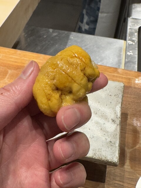 この辺りからなんとなく握りのペースも上がったかな?と感じましたが、京丹後の漬け寒鰤。寒鰤が口の中に残る中、根室の雲子。白子も超美味いんです。でももう限界なんです。ってことで、10人中6人がこの辺りでノックアウト。せっかく親方に握って頂いているにも関わらず最後まで到達出来ませんでした。申し訳ない。残念。悔しい。勿体無い。。。