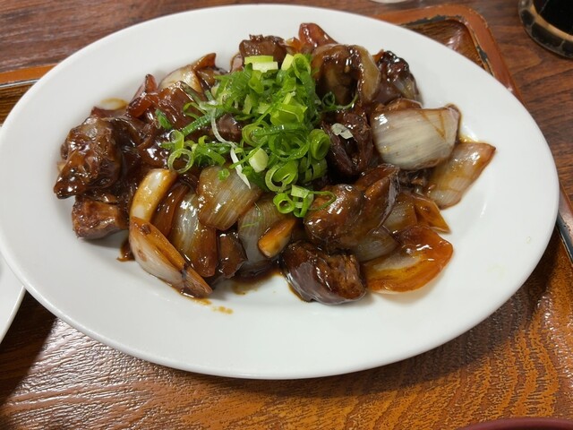 鶏の肝とハツ、そして沢山の玉ねぎがクッタクタになるくらいに照り焼きにされてます。。。