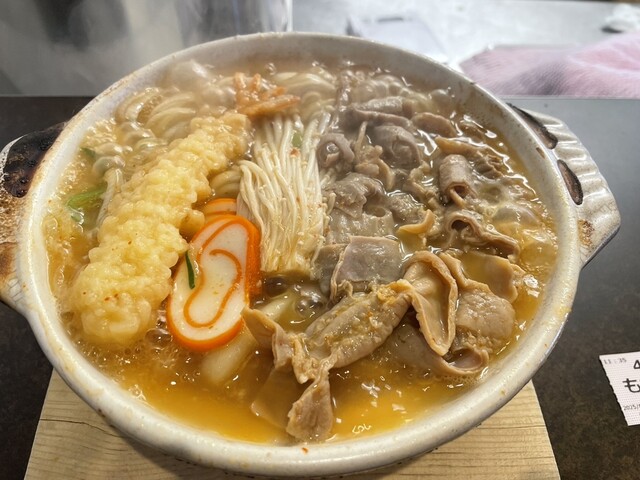 メニューが増えていましたが、初めての方はぜひもつうどんをどうぞ。食べても食べてもモツがたくさん入っています。海老天も乗っていて美味しいです。