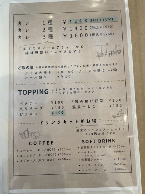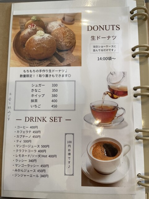 またカフェメニューに生ドーナツ、バスクチーズケーキ、スコーン等やコーヒー、紅茶、ミックスジュース等もありカフェ利用としても最適なお店です。