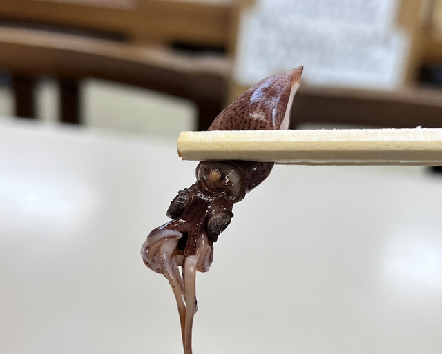 マグロ、ブリ、ホタルイカの3種。さっぱりマグロは赤身が3切れ、ブリはしっとり脂が美味くてならぬ。旬の味ホタルイカはねっとりと舌にまとわりついてくる