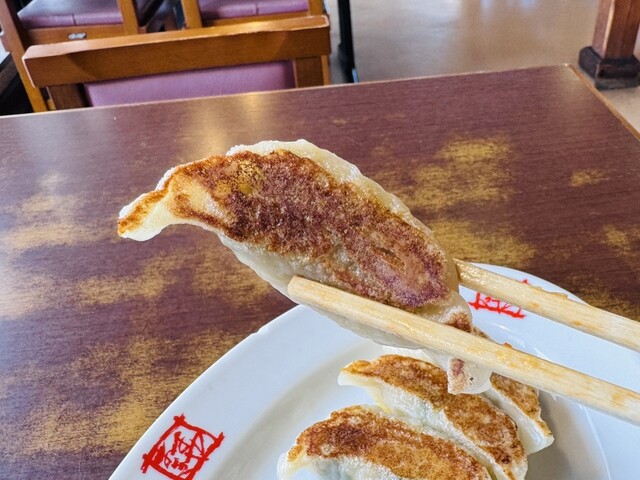 ラーメン屋にきて餃子を注文しない者はモグリであろう。4個のみだけど、150円と安いし、こちらはご飯おかわり自由だし。という事で熱々パリパリのをいただきます。肉汁たっぷり、ニンニクなしで、ランチタイムでも安心して食べられる
