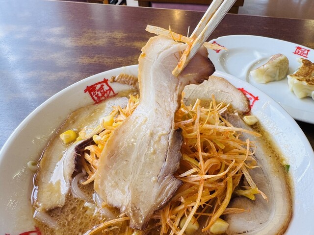 あまり味噌ラーメンは好まないのだが、今日は別なのだ。とにかく濃い味わいを欲している。そうだ、そうなのだ。これが欲しかったのだ。豆板醤を塗した大量の白髪ネギと、とうもろこし。そして4枚のデカいチャーシュー!厚みこそないが表面積の大きさから迫力が滲みだしてくる。お酢をたっぷり入れ、濃度の高い味噌スープと中太麺を一気にすすりこむいやぁ美味い!美味い!美味い!これぞ今食べたかった味。今求めているジャンクな味わいだ