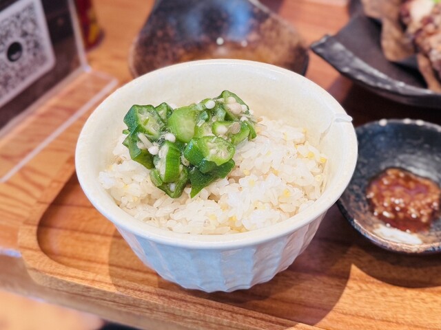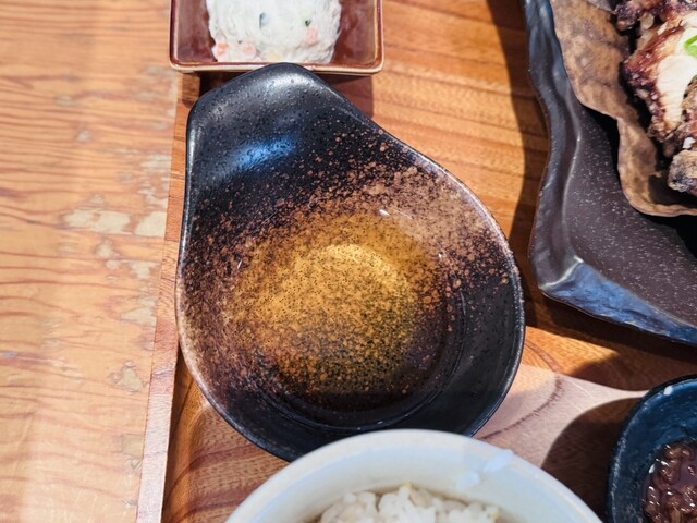 山賊焼きにはレモンが添えられ、好みに応じて付属の出汁、あるいは醤油豆をのせていただいてもよいとのこと。まずひと口食べて驚くのは、その軽さだ。しっかり揚がっているのに油ぎれがよく、衣も重たくないため、胃もたれすることなく食べ進められる。出汁につければよりさっぱりとした風味が立ち、反対に醤油豆をのせれば濃厚な味へと変化し、同じ料理でありながら表情ががらりと変わっていくのが面白い
