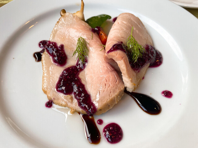 ブルーベリーのソースも甘酸っぱくて相性◎