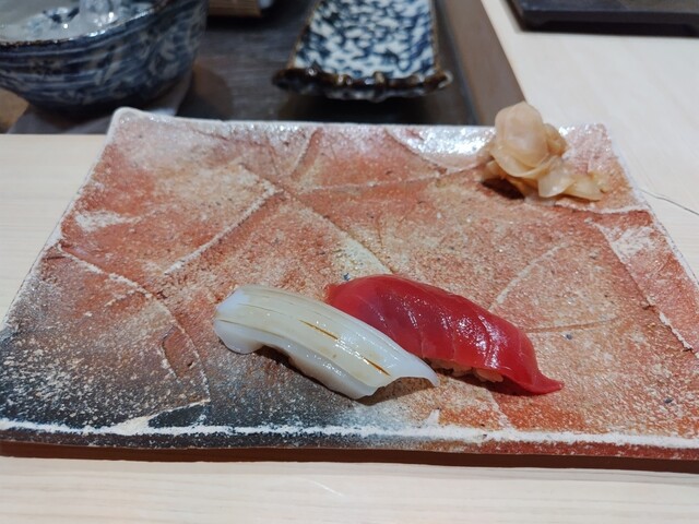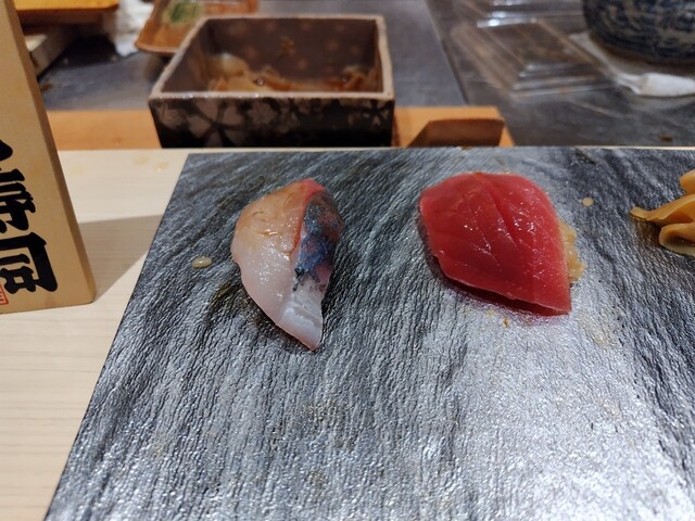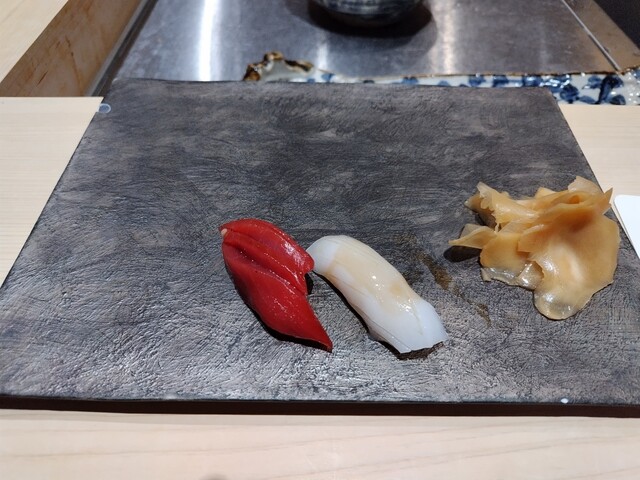 自分が座った左側のカウンターは、ベテランの白髪で七三分けの板さんと色黒の短髪の板さんの二人体制