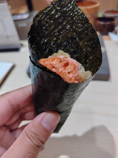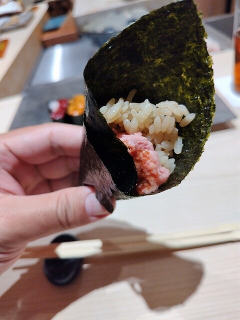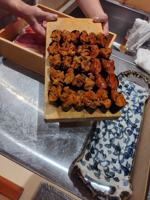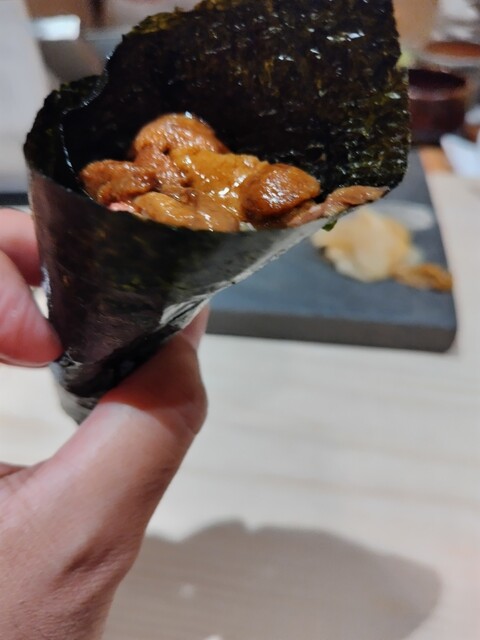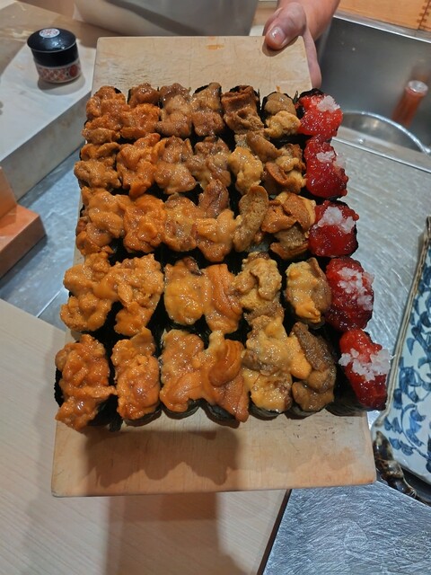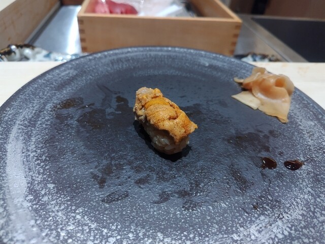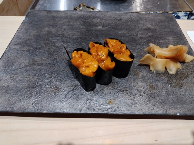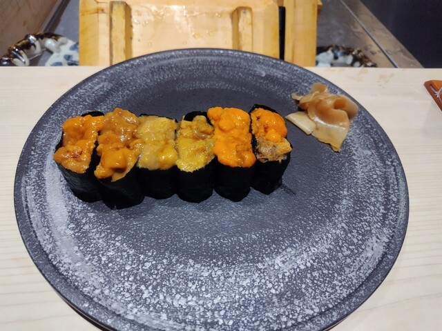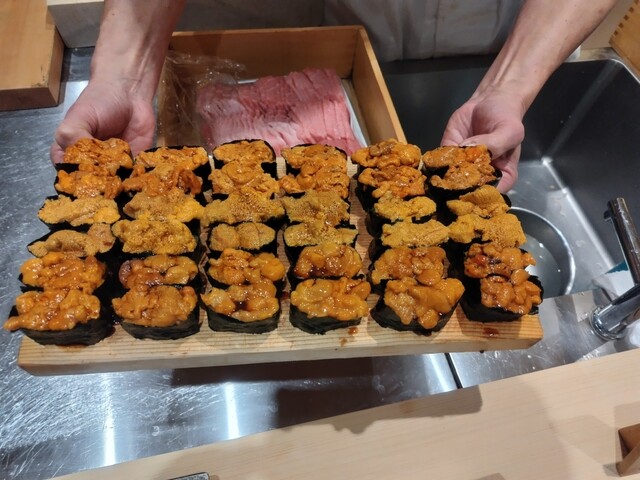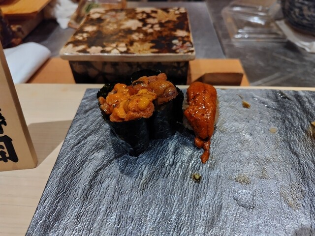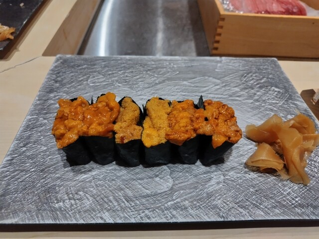 左のうにがロシア産で粒が大きいため、お代わりタイムからは海苔を使わず握りにしてくれた