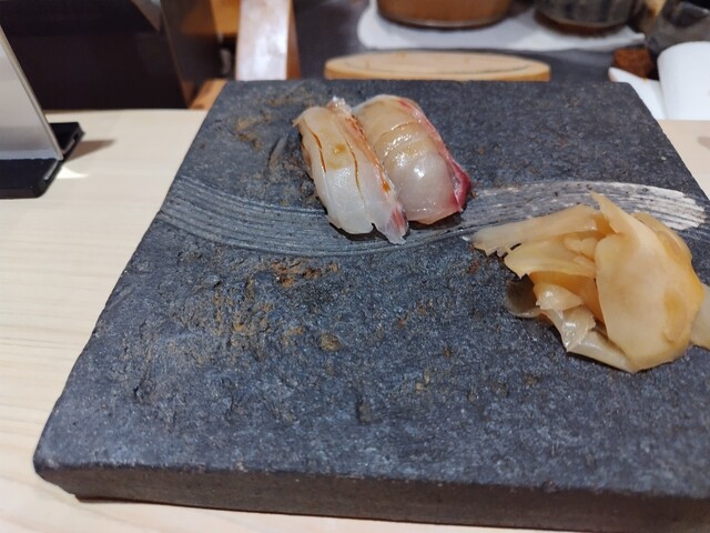 シマアジは身が締まっているが脂も乗っていて、今日のネタの中ではお気に入り
