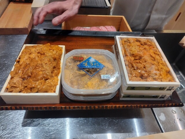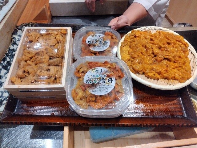 ウニはバフンウニ x 2種類(ロシア産)、ムラサキウニ(北海道産)の3種類
