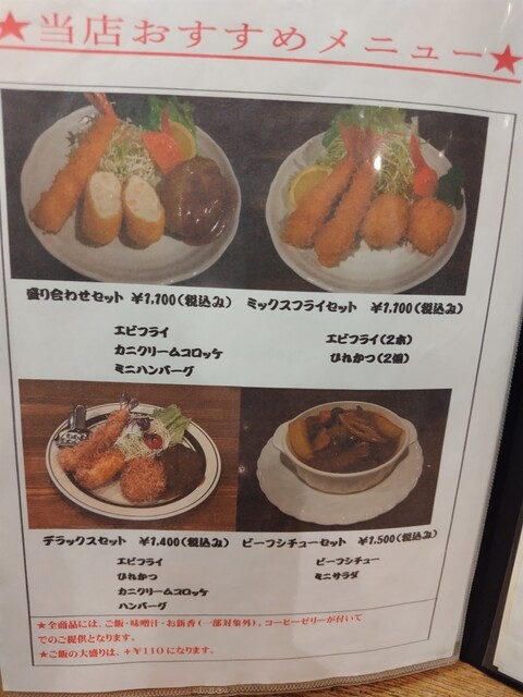 「カキクリームころっけ x 2 + 海老 + ヒレ」と「カキクリームころっけ x 2 + 海老 x 2」の2種類がある