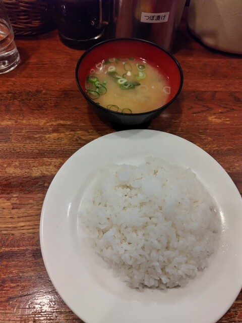 牡蠣バター焼定食の味噌汁とライス