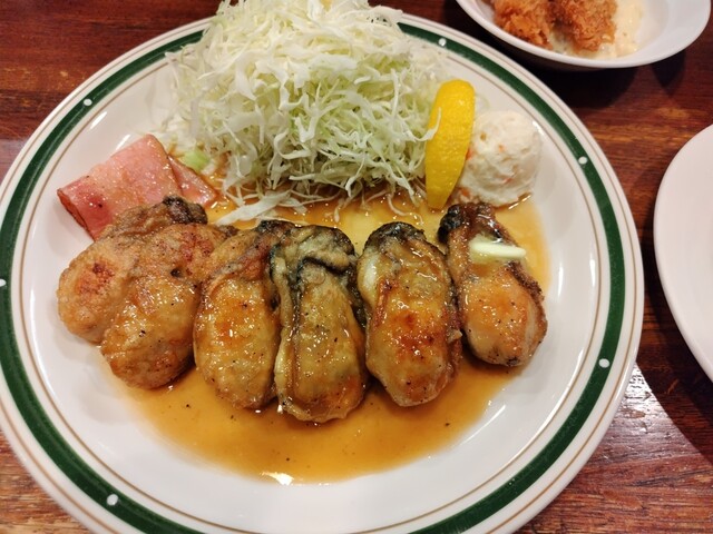 カキバター焼き定食130 g(1900円)+カキ増量プラス40g(500円)、カキフライ2個40g(560円)