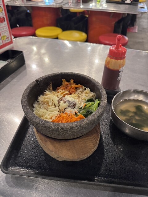 チーズが石の熱さによりカリカリになりとてもおいしかったです。ビビンパ味噌のコチュジャンも甘めで味濃いめでうまし。
