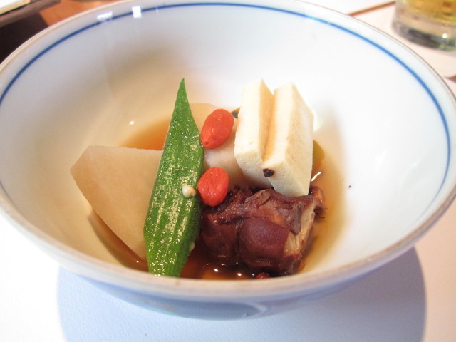 煮物:タコ、高野豆腐、オクラ