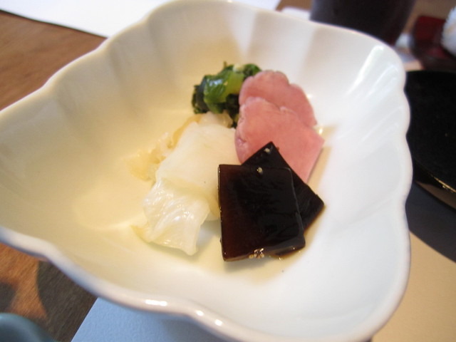 先付(ほうれん草豆腐、茄子のソース)