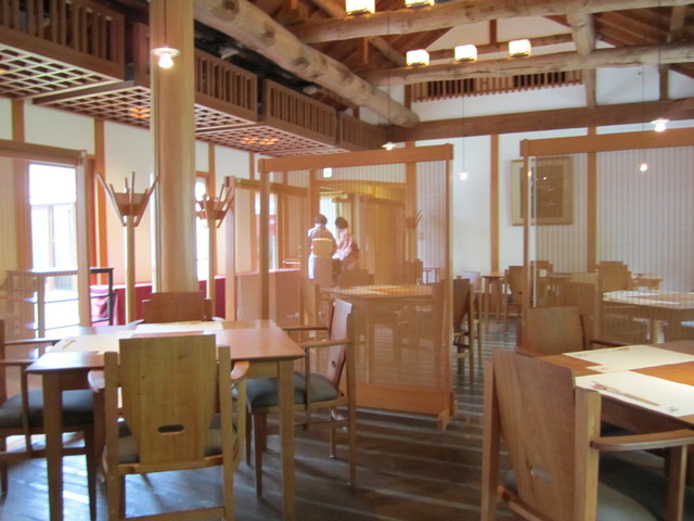 大きな駐車場が隣接しており、大変便利である。入口には店の方が既に立っており、笑顔で出迎えてくれた。敷地内い入ると美しく管理された庭を通り建物へ入る。木の香りだ、建物内には木材の香りが漂っており、ヒノキオールなのか非常に落ち着く。