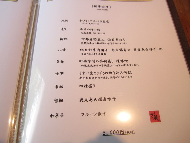 懐石コース 【風桜会席】を注文。