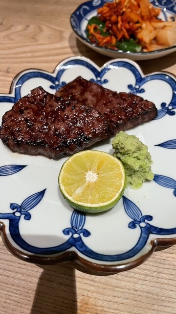 ・松坂牛のヒレ〜すだちと卸したての生ワサビと食べると赤身の旨味が口の中で炸裂。肉を食ってる〜と実感